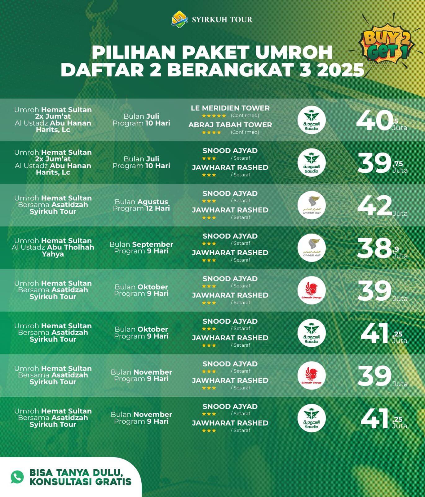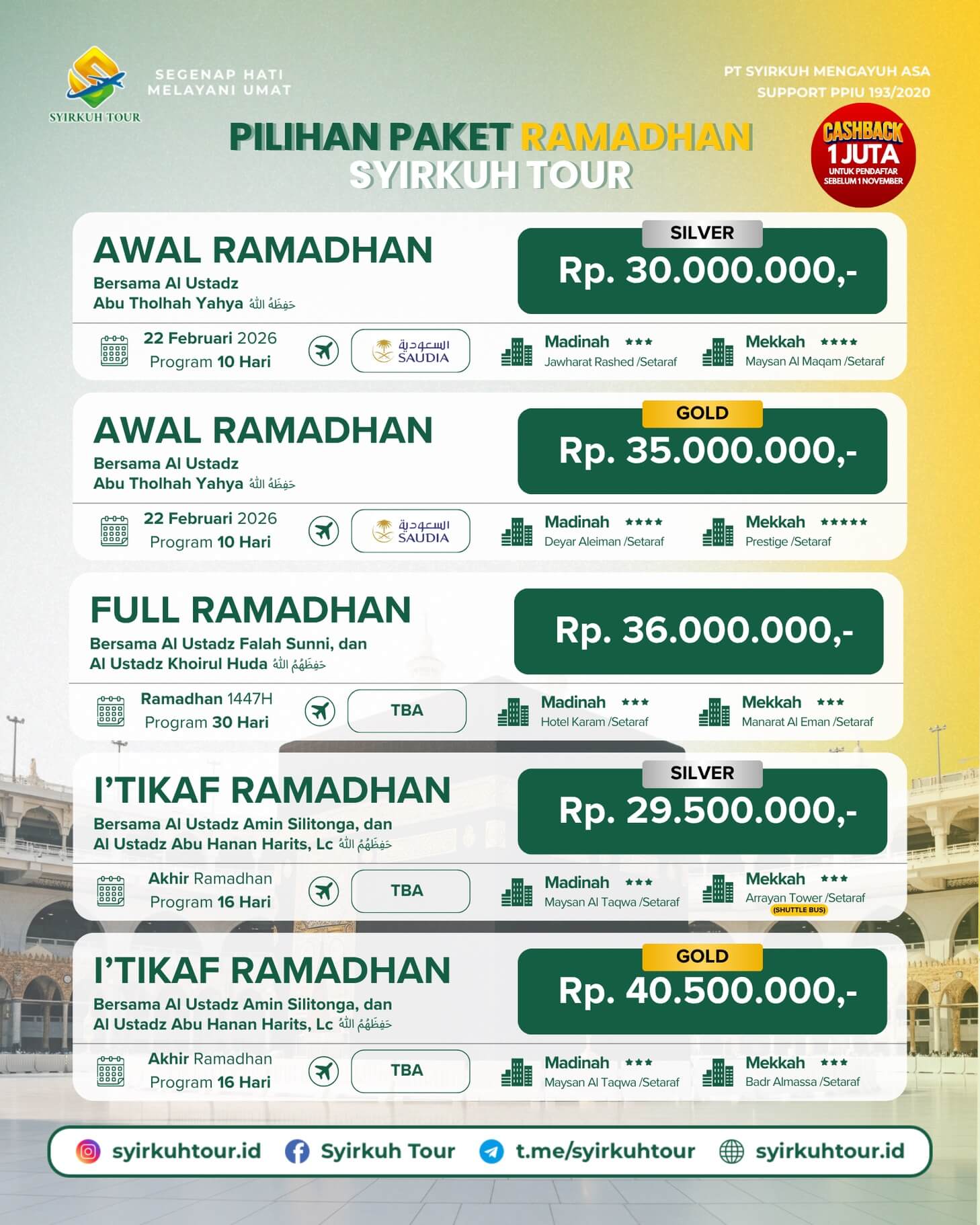 Lebih dari ratusan jama'ah telah mempercayakan penyelenggaraan umrahnya bersama SYIRKUH TOUR.